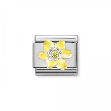 Original Nomination Classic Link in stainless steel with sterling silver White Flower with CZ and CZ Pavé Round Pendant with White Cubic Zirconia. All the details on this jewel are finished by hand. So many gorgeous new Links to choose from… you are going to have to add more than one to your bracelet. Or maybe just start a new one!