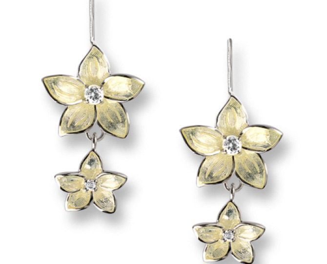 Yellow Flower Wire Earrings in Sterling Silver with Vitreous Enamel & White Sapphires