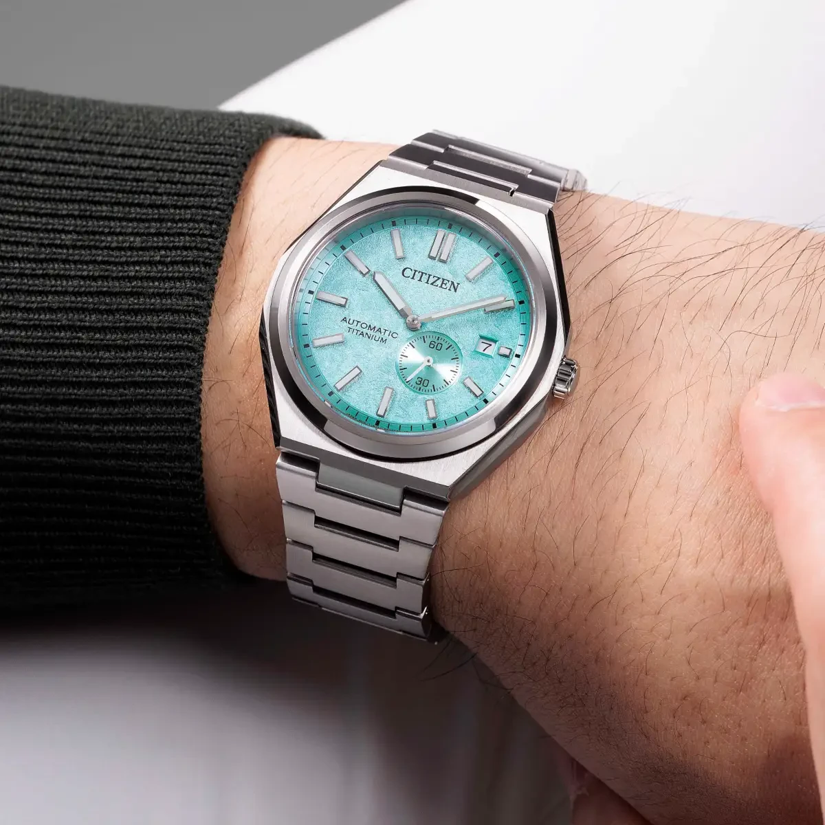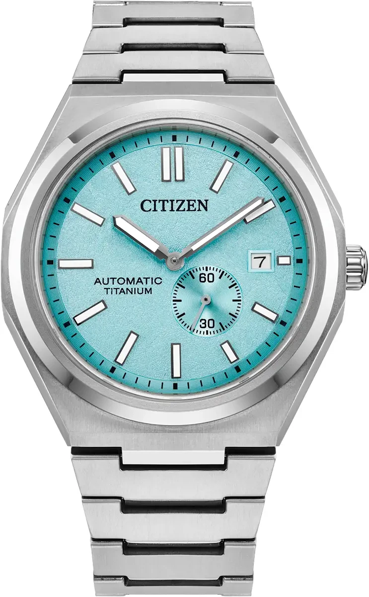 Pairing classic proportions and innovative technology with a distinctly modern style, we present our new Zenshin Mechanical series. Made with our proprietary material, Super Titanium™, which is five times harder and 40% lighter than stainless steel and is scratch- and rust-resistant, this sporty timepiece features a silver-tone Super Titanium™ case that is elevated with finely brushed and polished finishing while being secured to the wrist with an integrated matching bracelet. On the dial the sub second hand sits off centre and the textured light blue dial is accented with an outer minute ring in black, silver-tone details and luminous hands and markers. Water resistant to 100 metres.